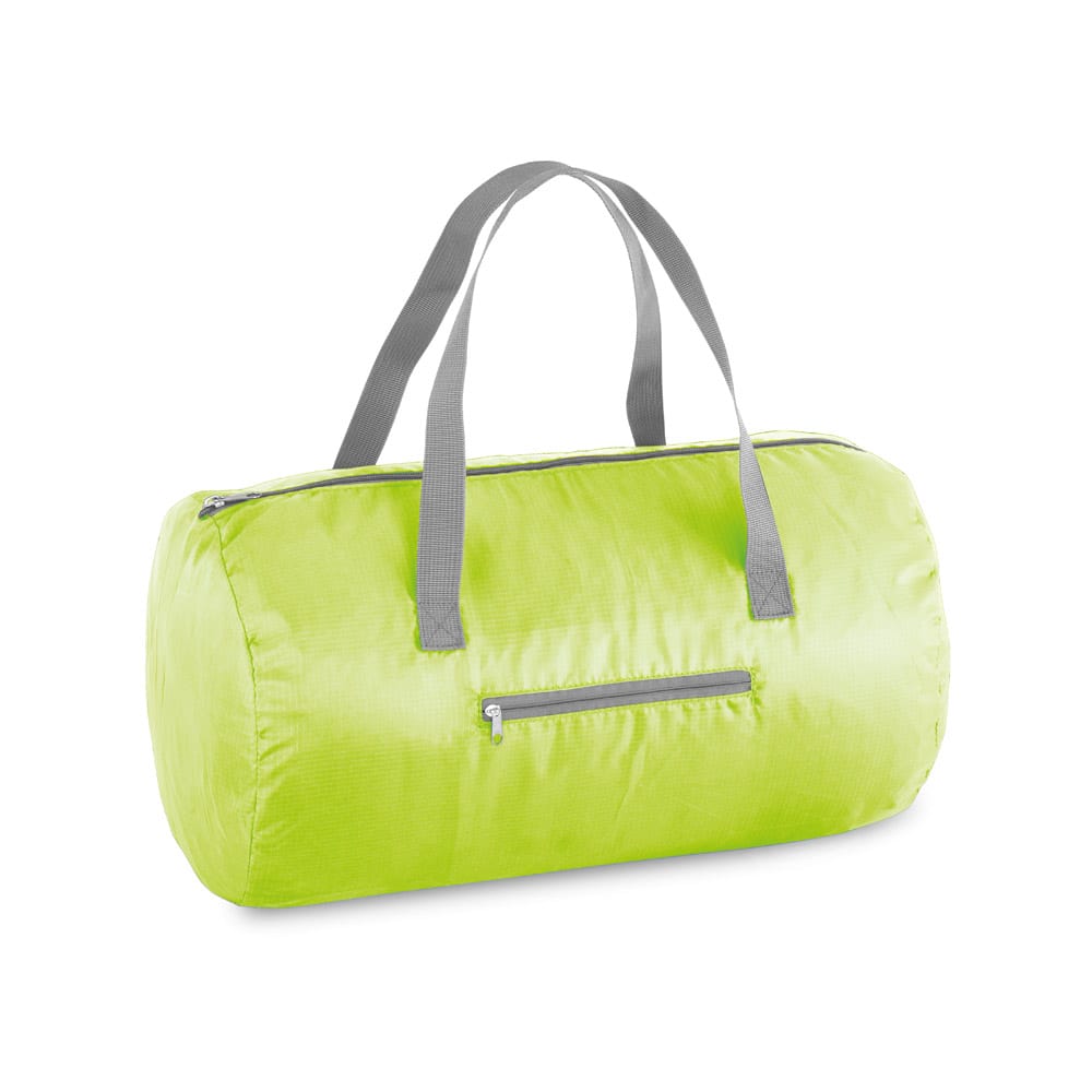 Sacola esportiva dobrável em 210D ripstop com bolso frontal. Fornecida desdobrada. Capacidade até 17 L. ø240 x 410 mm | Dobrado: 160 x 160 mm