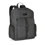 Mochila para notebook em algodão canvas pré-lavado. Compartimento principal forrado, com 2 divisórias almofadadas para computador até 15.6'' e tablet até 10.5''. A mochila tem bolso frontal e 2 bolsos laterais. Parte posterior e alças são almofadadas. Contém alça para transporte em trolley e placa em c. sintético para personalização. 300 x 420 x 120 mm | Placa: 60 x 30 mm