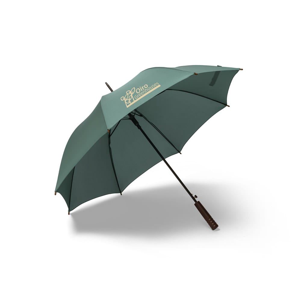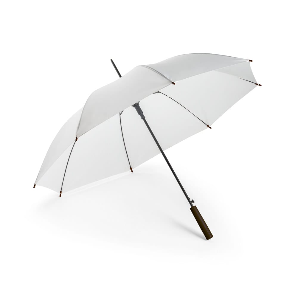 Guarda-chuva em 100% poliéster reciclado pongee 190T com abertura automática, haste e estrutura em metal. Pega em madeira. ø1050 x 850 mm