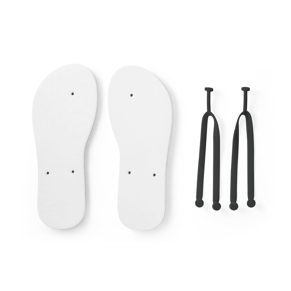 Chinelos confortáveis com sola em EVA e tira em PVC. A sola é totalmente personalizável em sublimação. Tamanhos disponíveis: P/M (36 ao 39). Fornecidos num polybag. P/M