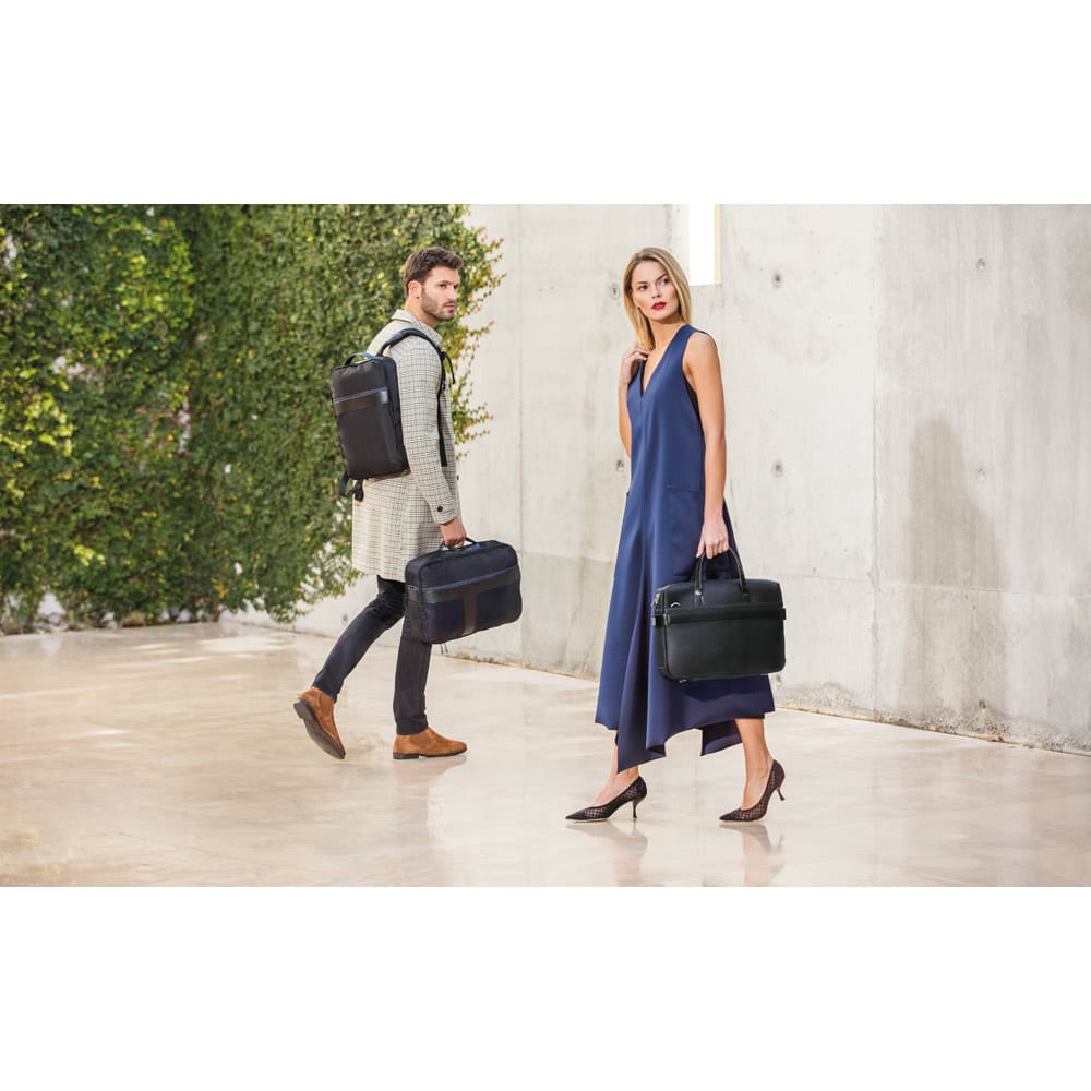 Mochila 2 em 1 com bolsa térmica que permite a sua utilização em conjunto ou separado. Mochila em 900D poliéster reciclado (100% rPET) com bolso e fundo em 600D, poliéster reciclado (100% rPET), de alta densidade com revestimento resistente à água. A mochila é totalmente almofadada e tem interior forrado em 210D poliéster reciclado (100% rPET). Possui 2 compartimentos principais: um compartimento traseiro almofadado para notebook até 17.3” e um compartimento frontal espaçoso com divisória amovível que permite arrumar a sua bolsa térmica no fundo (inclusa). Bolso frontal com zíper e detalhe refletor. Bolso lateral ideal para transportar a sua squeeze e parte posterior com acolchoamento extra e alça para trolley. Capacidade até 20 L. A bolsa térmica almofadada em 900D rPET com isolamento em PEVA. Capacidade 4,5 L. Mochila: 300 x 460 x 160 mm | Bolsa térmica: 240 x 150 x 140 mm
