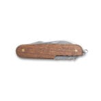 Canivete multifunções em aço inox e madeira com 5 funções. 90 x 25 x 12 mm