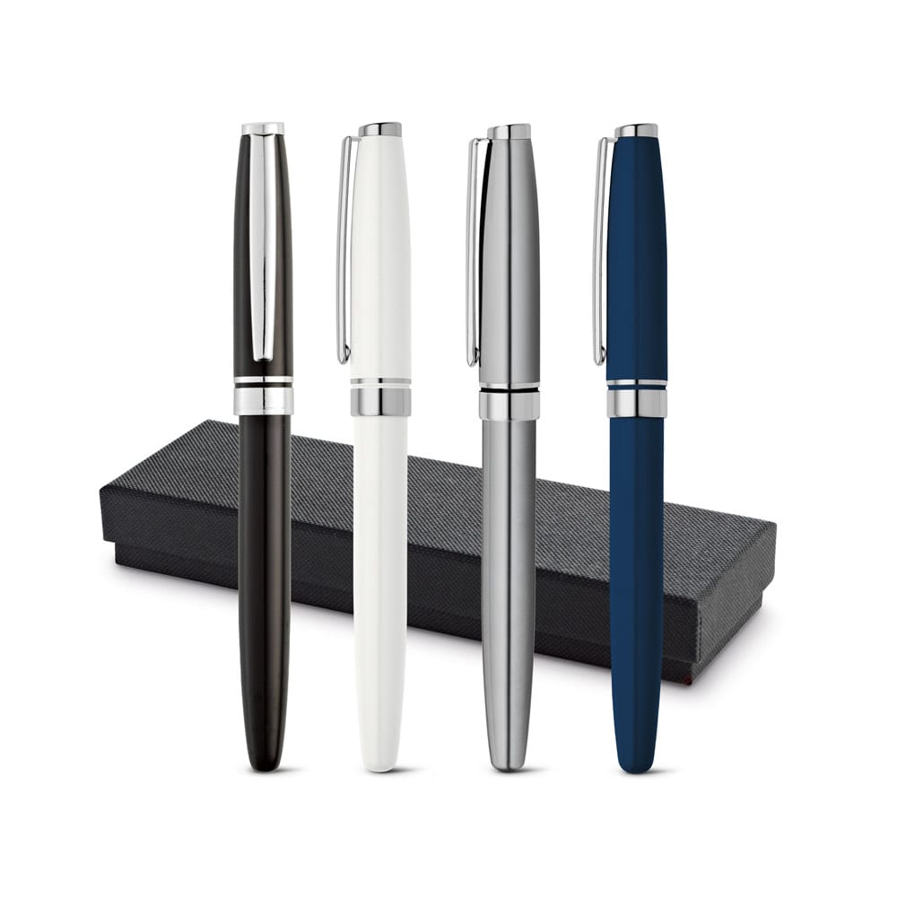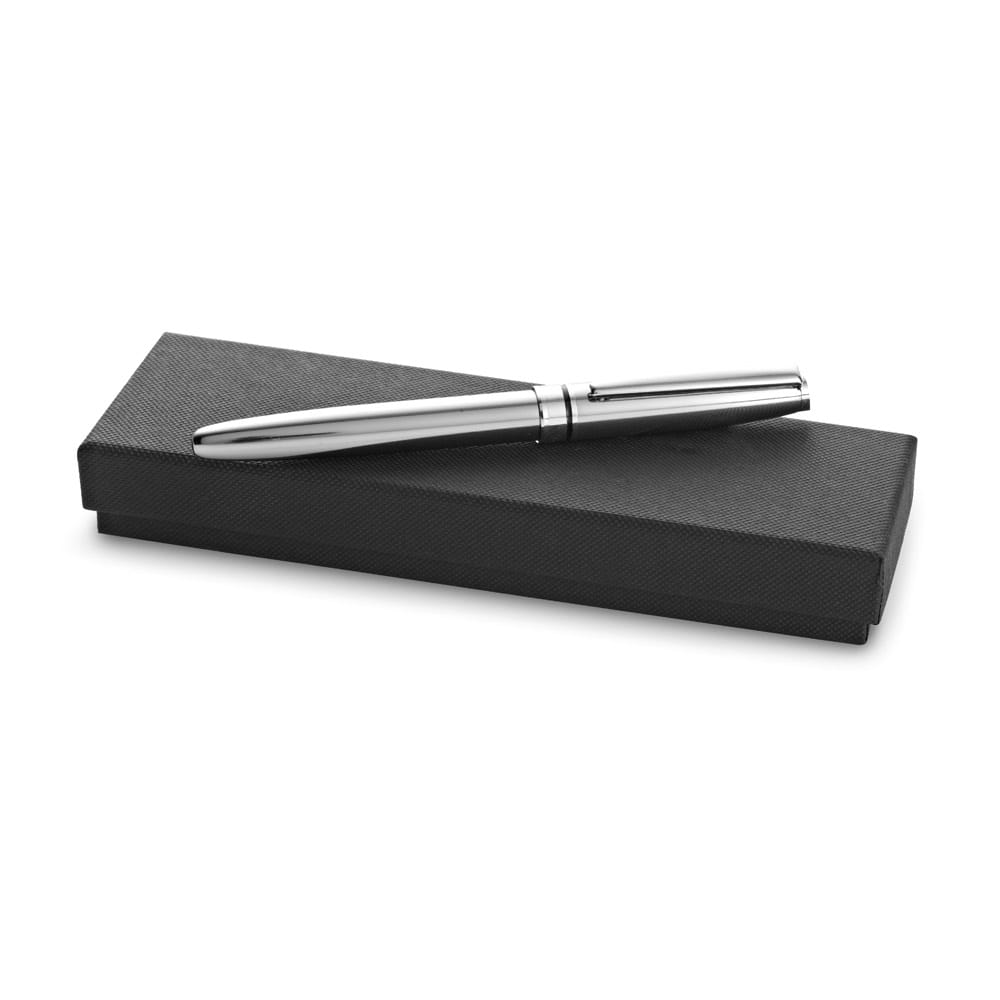 Roller em metal com clipe. Escrita a preto. Fornecido em estojo presente almofadado. ø12 x 136 mm | Estojo: 175 x 55 x 25 mm