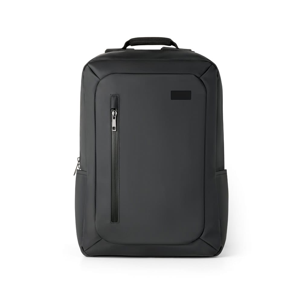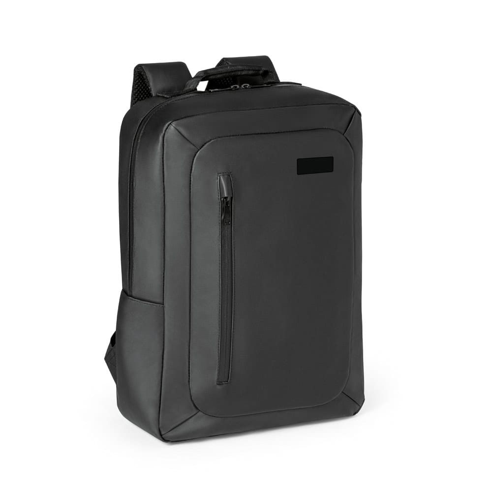 Mochila para notebook 600D impermeável com compartimento principal almofadado com divisória para notebook até 15.6''. Bolso frontal e zípers impermeáveis. Bolso lateral em tela e parte posterior almofadada, com sistema de apoio acolchoado para as costas e alças almofadadas. Placa metálica removível com imã, para fácil gravação. Capacidade até 10 L. 280 x 400 x 110 mm