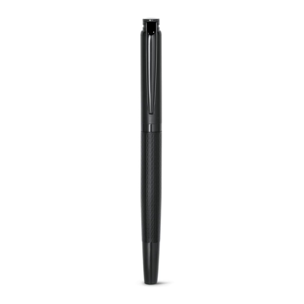Roller em metal com suave relevo no corpo. Escrita preta. Fornecido em estojo presente almofadado. ø11 x 137 mm | Estojo: 179 x 55 x 30 mm