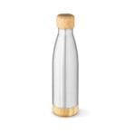Garrafa em aço inox (90% reciclado) de parede dupla térmica, isolada a vácuo. Com tampa e base em bambu. Capacidade até 800 mL. Fornecido em caixa presente de papel kraft. Certificação EU Food Grade. A cor e o resultado da impressão nos materiais naturais pode variar entre produtos. ø80 x 312 mm