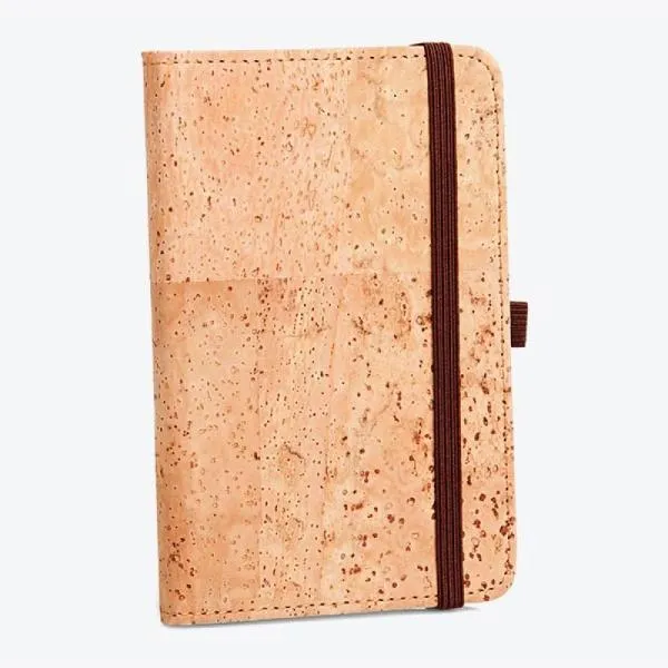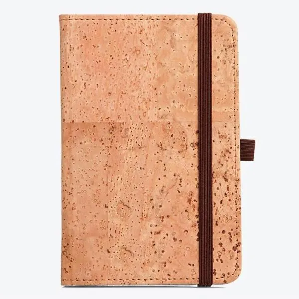 Caderneta capa dura. Conta com revestimento em Cortiça; fechamento em elástico; 80 folhas não pautadas; porta caneta em elástico. ESPECIFICAÇÕES TÉCNICAS