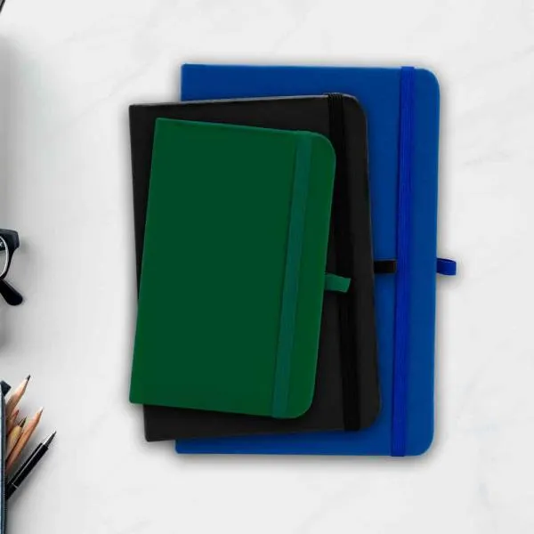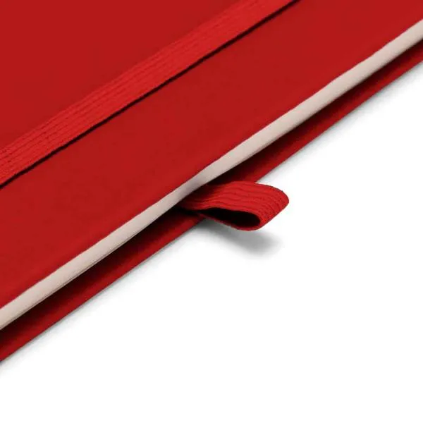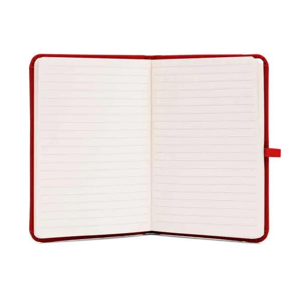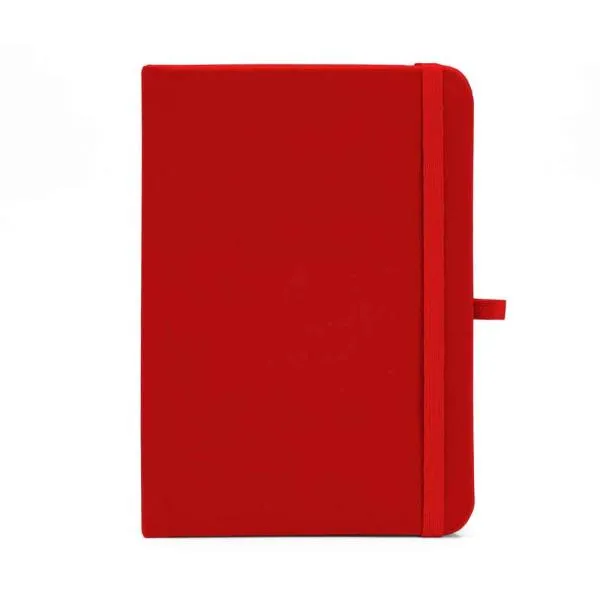 Caderno para anotações vermelho com capa dura. Conta com 80 folhas pautadas, porta caneta e elástico para fechamento Gramatura da folha de 70 g/m2