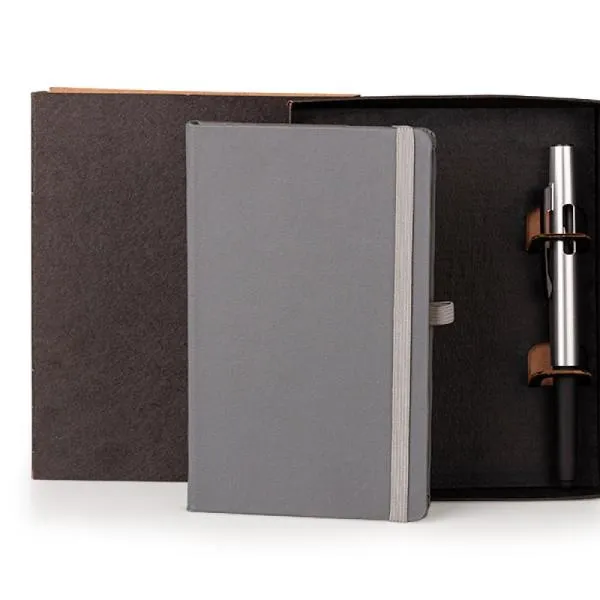 CADERNETA PARA ANOTAÇÕES COM CANETA – CINZA