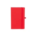 Caderno para anotações vermelho com capa dura. Conta com 80 folhas não pautadas, marcador de página, porta caneta e elástico para fechamento. Gramatura da folha de 70 g/m2.