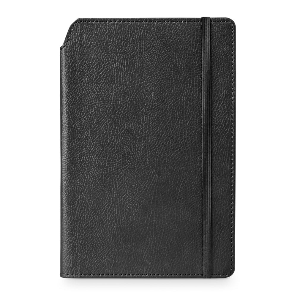 Caderno A5 de capa dura em c. sintético e 96 folhas pautadas. Suporte para esferográfica (não inclusa). Fornecida em bolsa non-woven. 140 x 210 mm