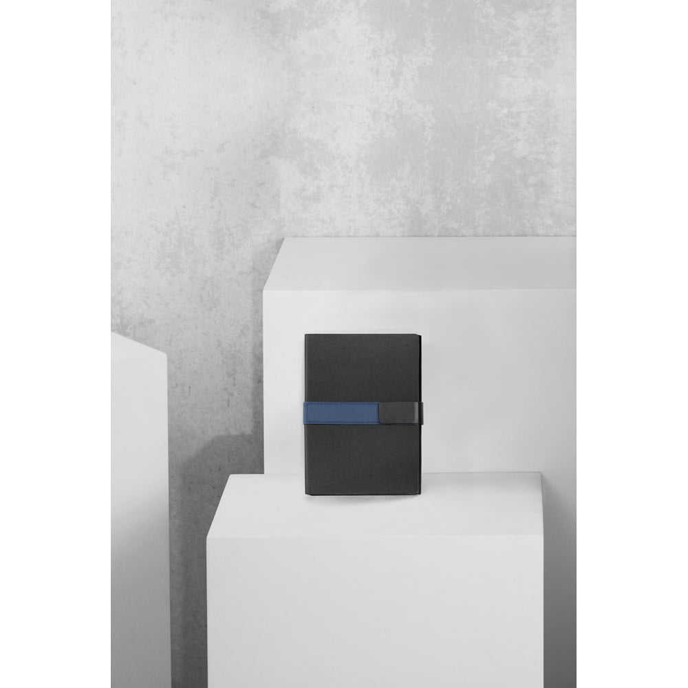 O DYNAMIC é um caderno A5 idealizado e desenhado para ser um objeto funcional e prático com um toque de elegância citadina. Possui dois blocos de escrita diferentes, em cada um dos lados, que podem ser utilizados e fechados, separadamente. Possui sistema de fecho com ímã na faixa que envolve o bloco. A faixa, tem uma cor diferente em cada um dos lados, permitindo a sua identificação, conferindo uma certa irreverência ao produto. O material exterior é em polipele de elevada qualidade e 1680D, texturado e plano. Possui 128 folhas em papel proveniente de gestão florestal sustentável, que se dividem proporcionalmente em folhas lisas e folhas pautadas, identificáveis pela faixa exterior. O DYNAMIC torna-se único pelo seu design mas também pela sua funcionalidade, em que a dualidade o torna num objeto perfeito para todos os momentos do dia-a-dia. Fornecido em caixa presente. 150 x 210 mm | Caixa: 200 x 30 x 265 mm
