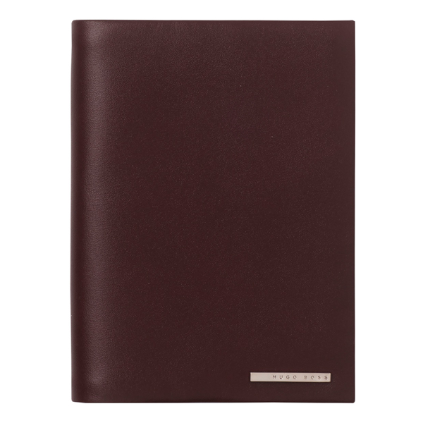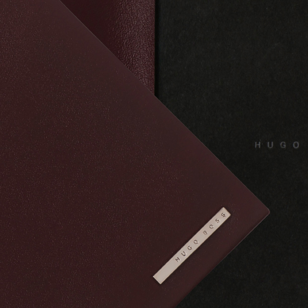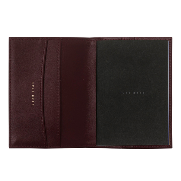 Capa para caderno A7. Burgundy. Coleção Essential. Embalagem "Hugo Boss" inclusa (HBP500). Para usar com os cadernos standard A7. 87 x 115 x 14 mm | Caixa: 150 x 174 x 30 mm