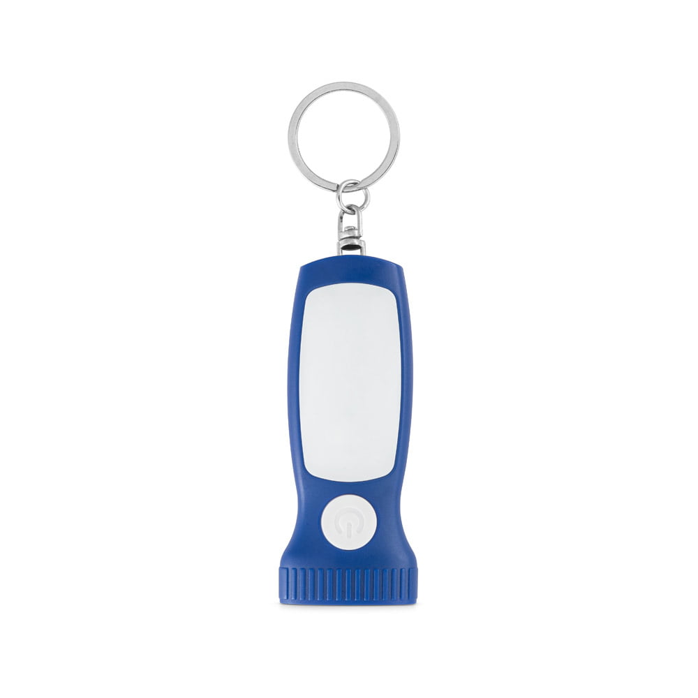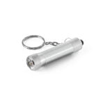 Chaveiro em alumínio com lanterna de 3 luzes LEDs. Incluso 4 pilhas LR44. ?17 x 62 mm