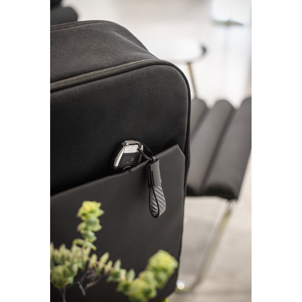 Chaveiro em c. sintético com textura em fibra de carbono e metal. Fornecido em caixa presente. 35 x 100 x 10 mm
