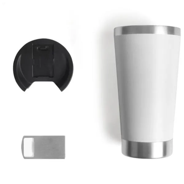 COPO TÉRMICO C/ TAMPA E ABRIDOR – BRANCO – 500 ML