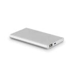 Bateria portátil slim em alumínio. Bateria de lítio com capacidade de 4.000 mAh, tempo de vida ≥ 500 ciclos e com saída USB-A. Incluso cabo USB para carregar a bateria. Fornecida em caixa presente. 110 x 68 x 10 mm