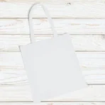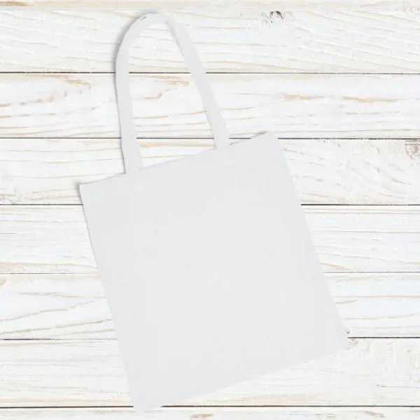 Sacola ecobag em algodão reciclado (70%) e rPET (30%).