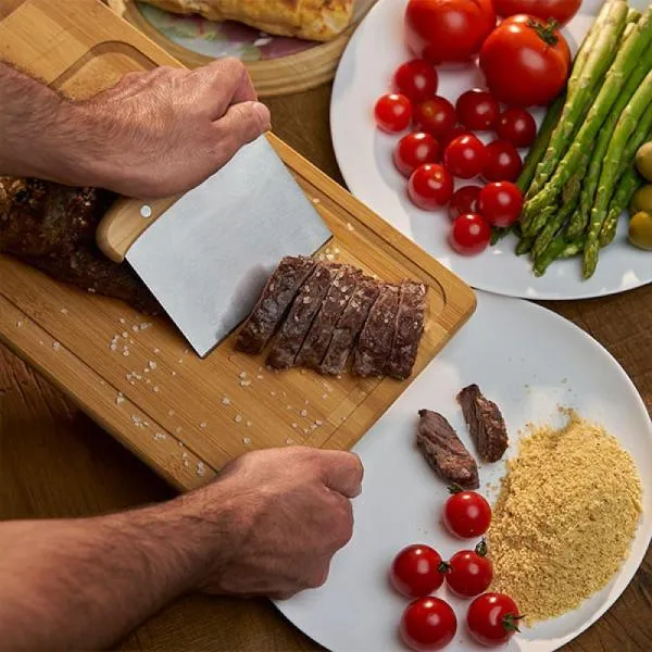 Espátula multiuso em Bambu / Inox. Conta um leve fio de corte.