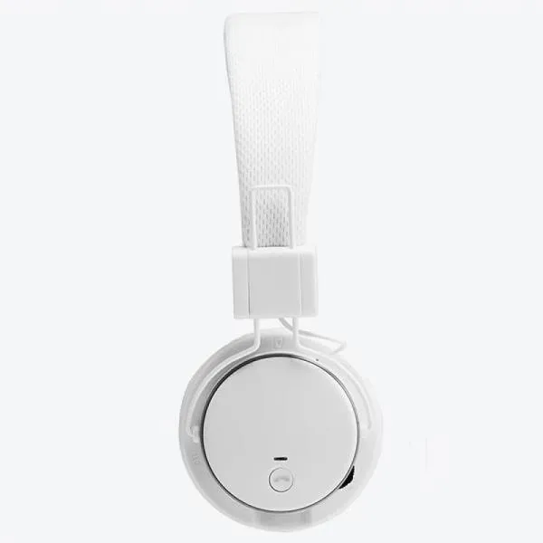 Fone de ouvido dobrável branco em ABS. Conta com transmissão bluetooth; leitor de cartão TF; rádio FM; controle de volume; atende chamadas; acesso à playlist do dispositivo móvel; autonomia de até 4hrs; cabo para carregar; estrutura almofadada. Disponível nas cores: branco, preto, azul e vermelho. ESPECIFICAÇÕES TÉCNICAS