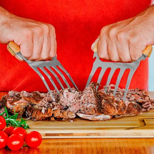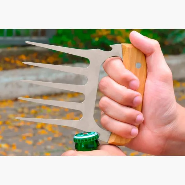 Conjunto de 2 garfos 5 dentes com abridor de garrafa em Madeira/Inox.