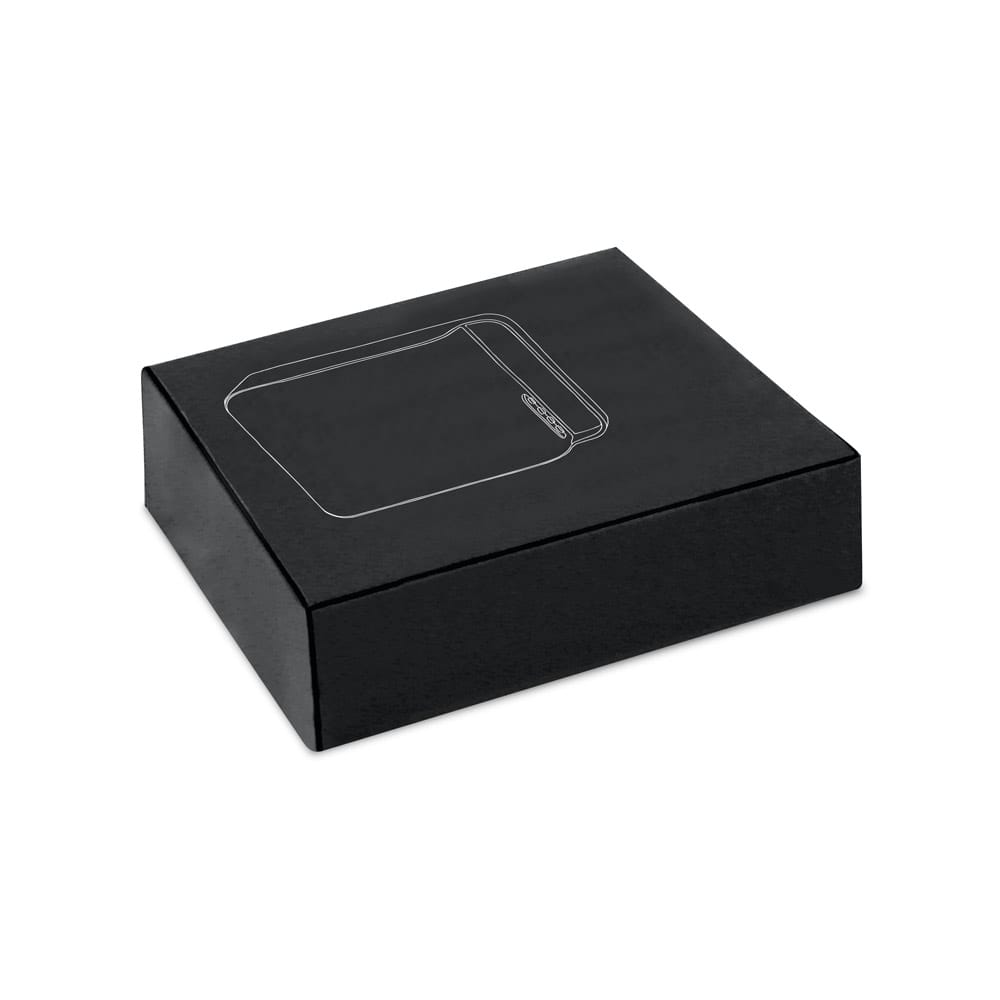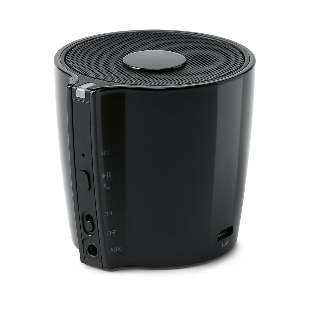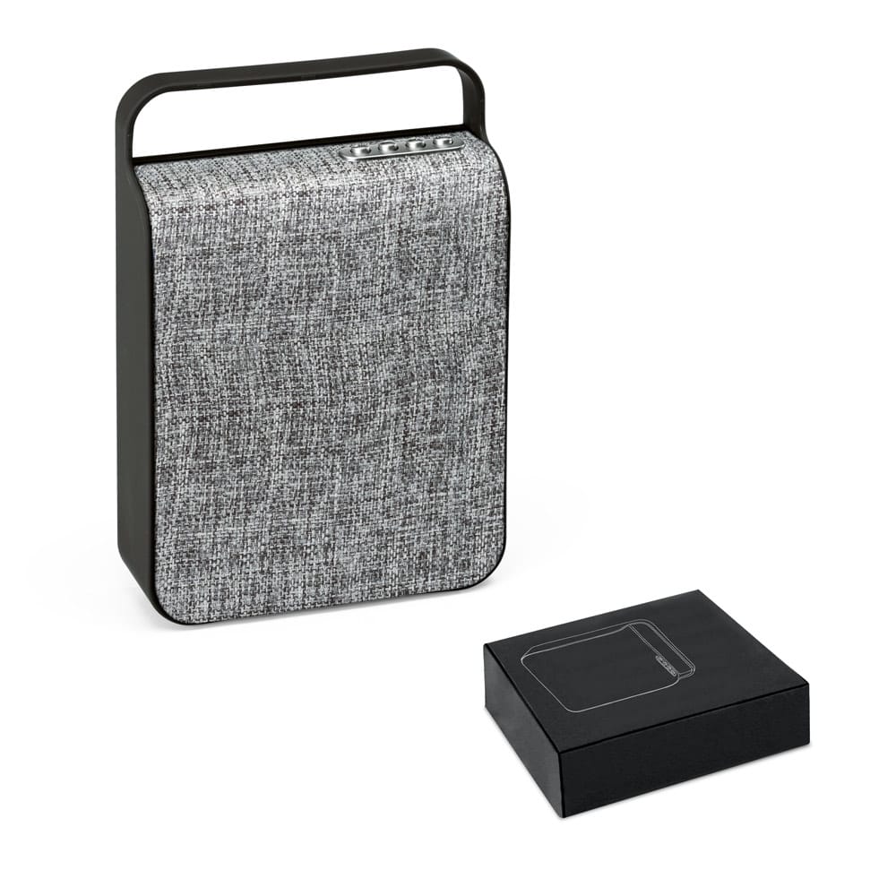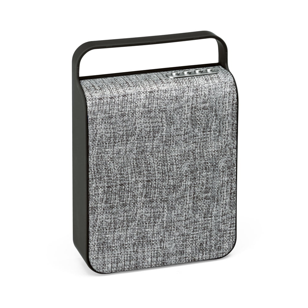 Caixa de som com microfone em ABS, tecido em poliéster e acabamento emborrachado. transmissão sem fios BT v4.2, ligação stereo 3,5 mm e leitor de cartões TF. Com 2 x 3W/4Ω e autonomia aproximada de 3 h. Função para atender chamadas, controle de volume, conexão à playlist do dispositivo móvel e rádio FM. Incluso cabo USB para carregar. Fornecida em caixa presente. 155 x 230 x 55 mm | Caixa: 170 x 260 x 70 mm