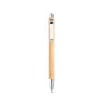 Esferográfica em bambu com clipe de metal. Até 1,5 km de escrita. Escrita em azul. A cor e o resultado da impressão nos materiais naturais pode variar entre produtos. ø11 x 138 mm