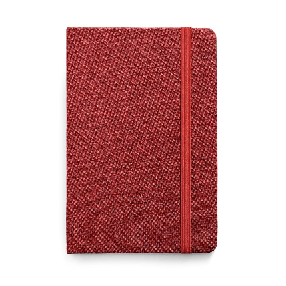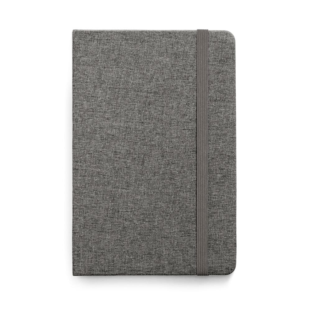 HUGO. Caderno A5 em tecido poliéster com folhas pautadas