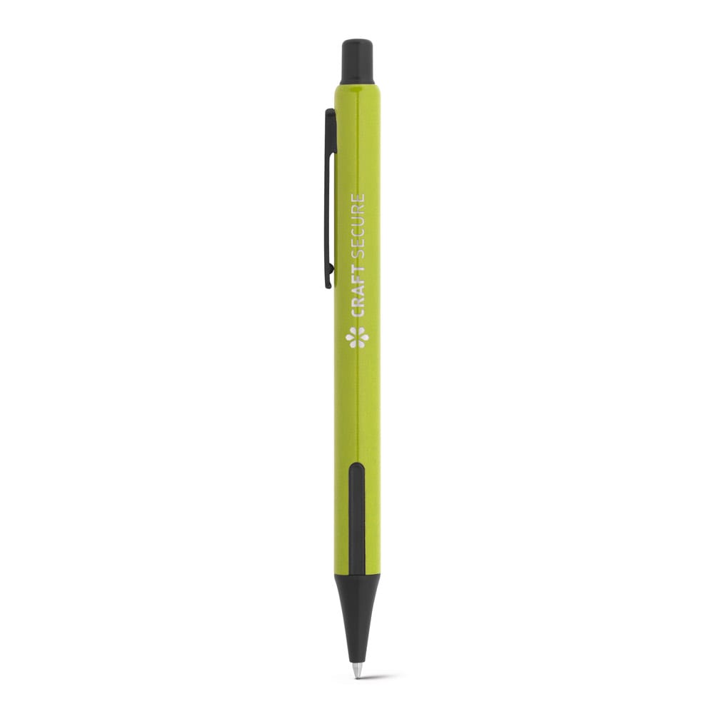 Esferográfica em alumínio. Escrita em azul. Até 1,5 km de escrita. ø11 x 139 mm