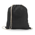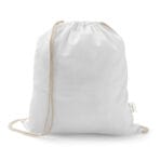 Sacola tipo mochila em 70% algodão reciclado e 30% poliéster reciclado (140 g/m²), com alças de algodão. O tecido é sem tingimento, é utilizado na sua cor original, sem produtos químicos de tingimento ou branqueamento, contribuindo para um menor impacto ambiental. 370 x 410 mm