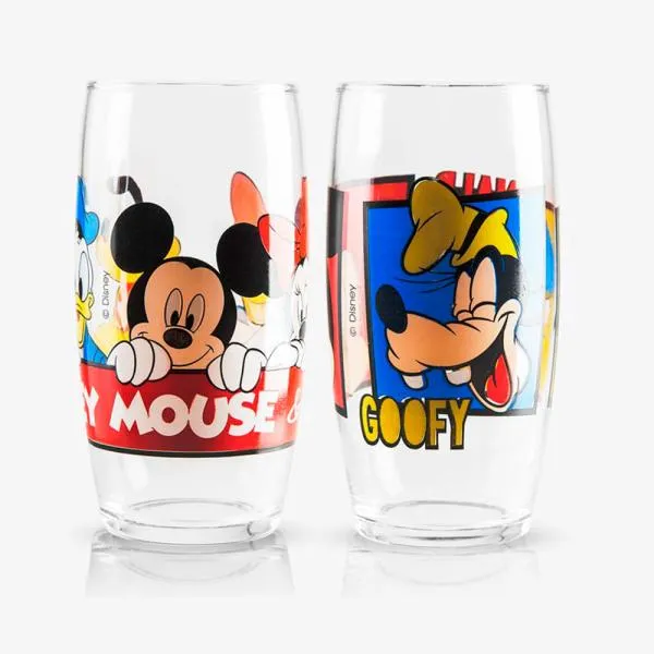Jogo de copos personalizados contendo dois copos Mickey e Amigos em vidro.