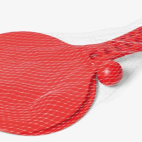 Composto por duas raquetes vermelhas confeccionadas em polipropileno com empunhadura estilizada e uma bolinha com 4cm em PVC. Ideal tanto para ações que estimulam o lazer e bem estar, como à prática de esportes ou entretenimento. Disponível nas cores azul, vermelha, verde e laranja.