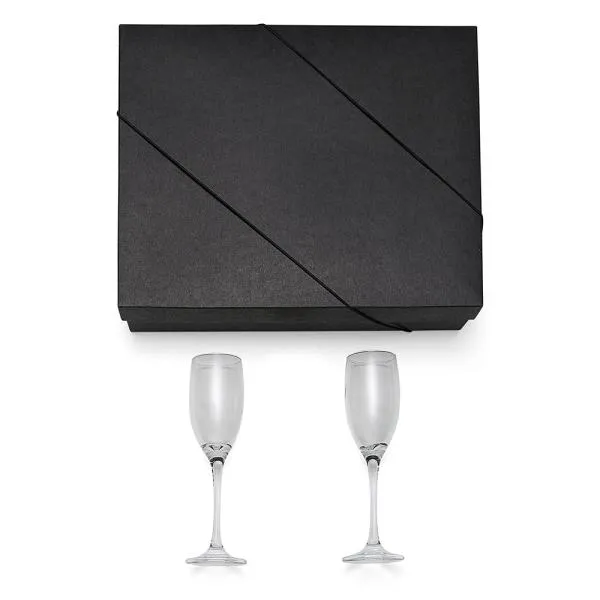 Jogo com 2 taças de vidro para Champagne, com espaço para a garrafa baby (NÃO ACOMPANHA GARRAFA). Capacidade das taças: 190ml cada
