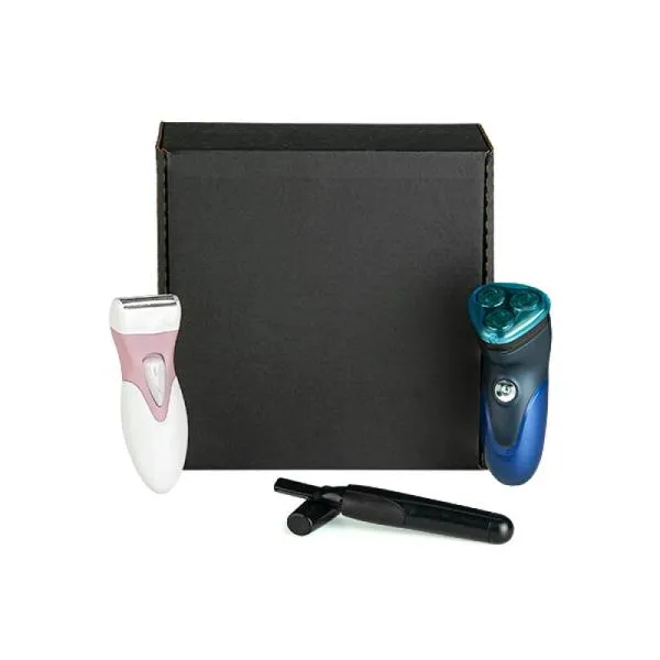 Kit barbeador, depilador e aparador.Composto por depilador e aparador à pilha (Não inclusas) e barbeador à bateria (Carregador 220v).