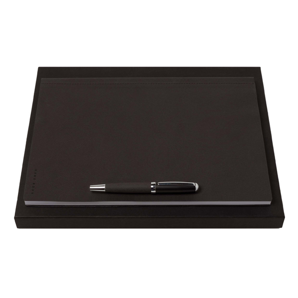 Kit caderno A4 e roller. Dark Grey. Coleção Advance. Caderno com 80 folhas não pautadas. Embalagem "Hugo Boss" inclusa. Caderno: 240 x 300 x 12 mm | Roller: ø14 x 133 mm