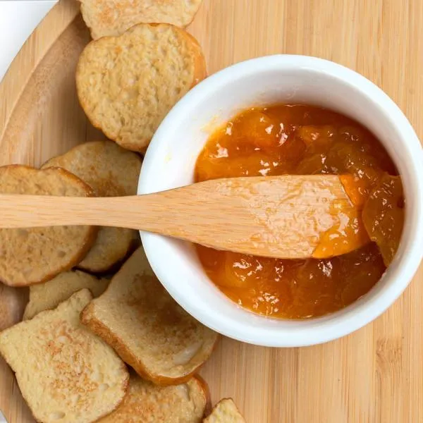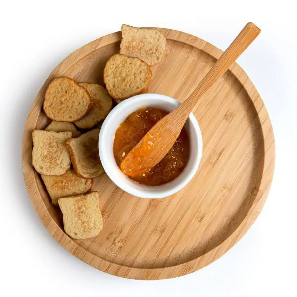 Kit para petisco. Conta com petisqueira e espátula em bambu; ramekin em porcelana.