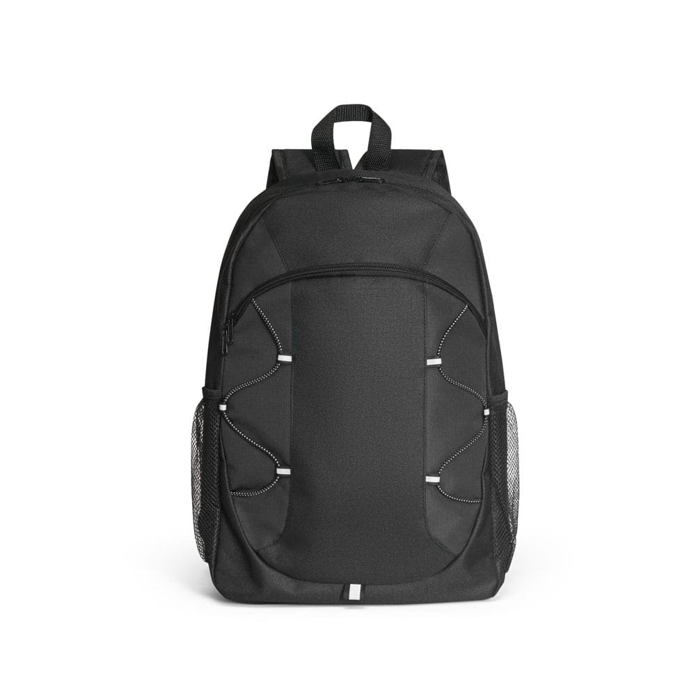Mochila em 600D com detalhes em ripstop colorido. Bolso principal com zíper e bolsos laterais em tela mesh. Parte posterior e alças almofadadas. Contém diversos elementos refletores. Capacidade 16 L. 290 x 440 x 120 mm