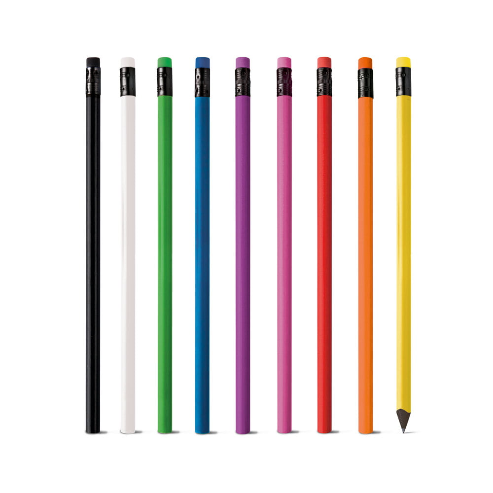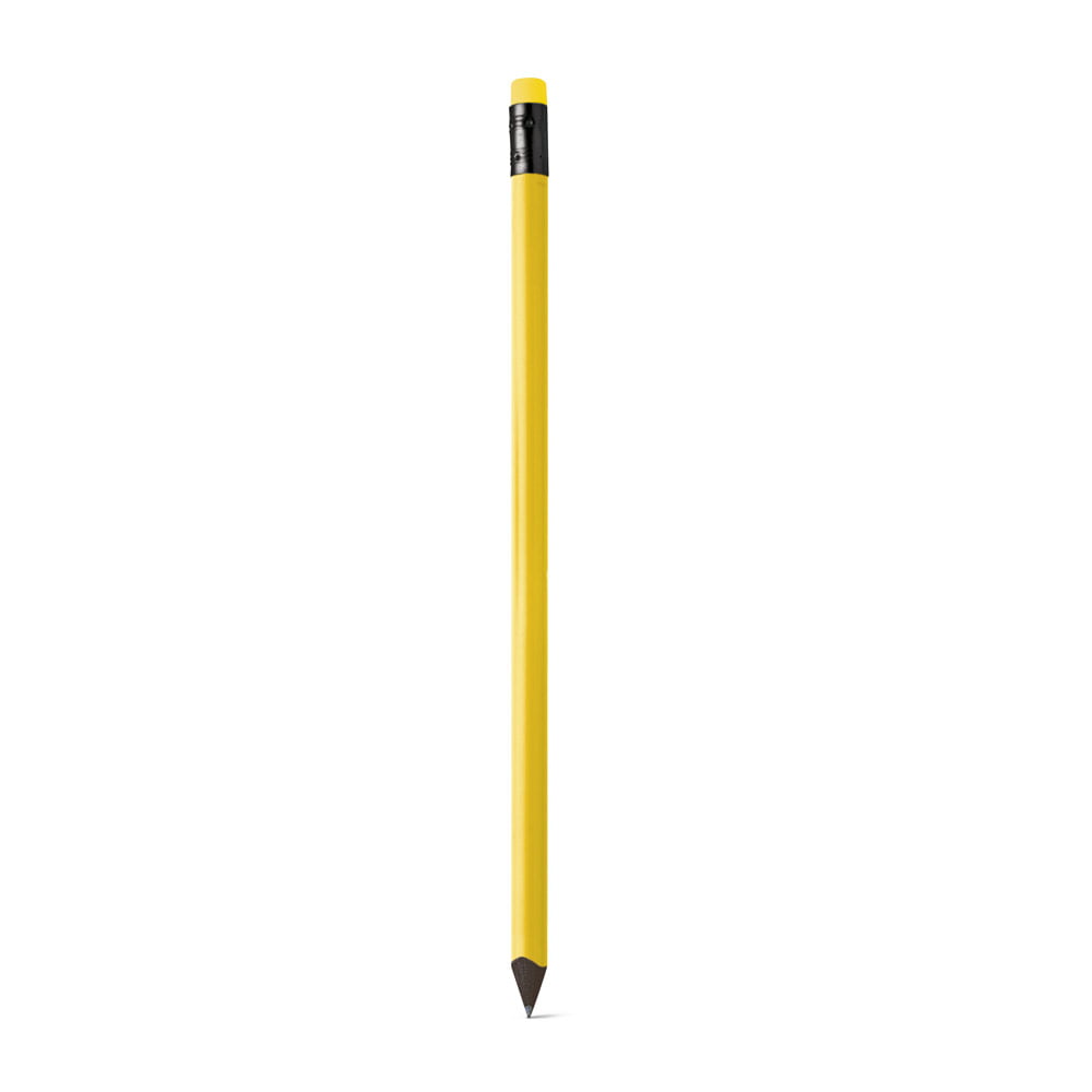 Lápis em resina 100% reciclada com borracha. Grau de dureza: HB. Produto certificado de acordo com a portaria Inmetro nº423 de 8/out/2021. ø7 x 190 mm