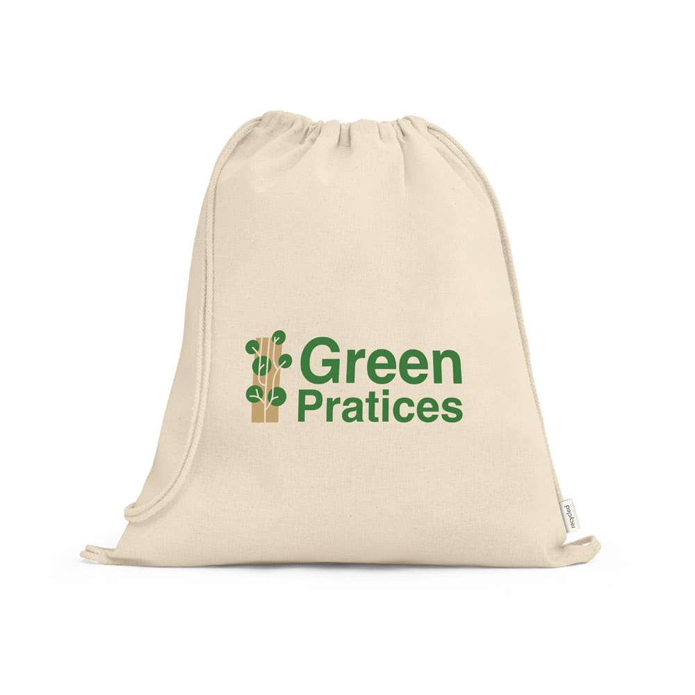 Sacola tipo mochila 100% algodão reciclado (180 g/m²) com alças. 370 x 410 mm