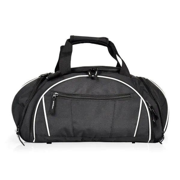 Mala Esportiva preta em Nylon e Polyester 300D. Conta com alça de ombro ajustável, alça de mão, cinco divisões com zíper, sendo, dois laterais, dois frontais e um superior. Capacidade: 35L ESPECIFICAÇÕES TÉCNICAS
