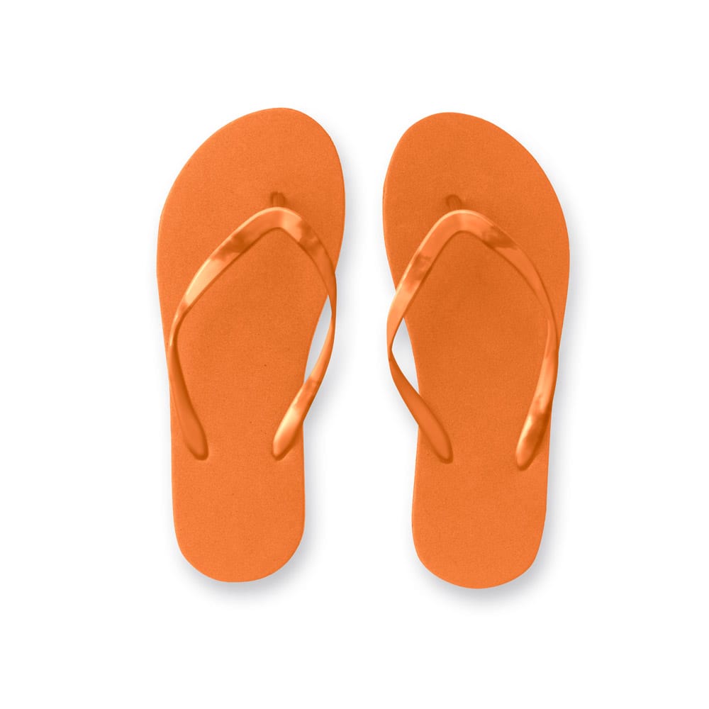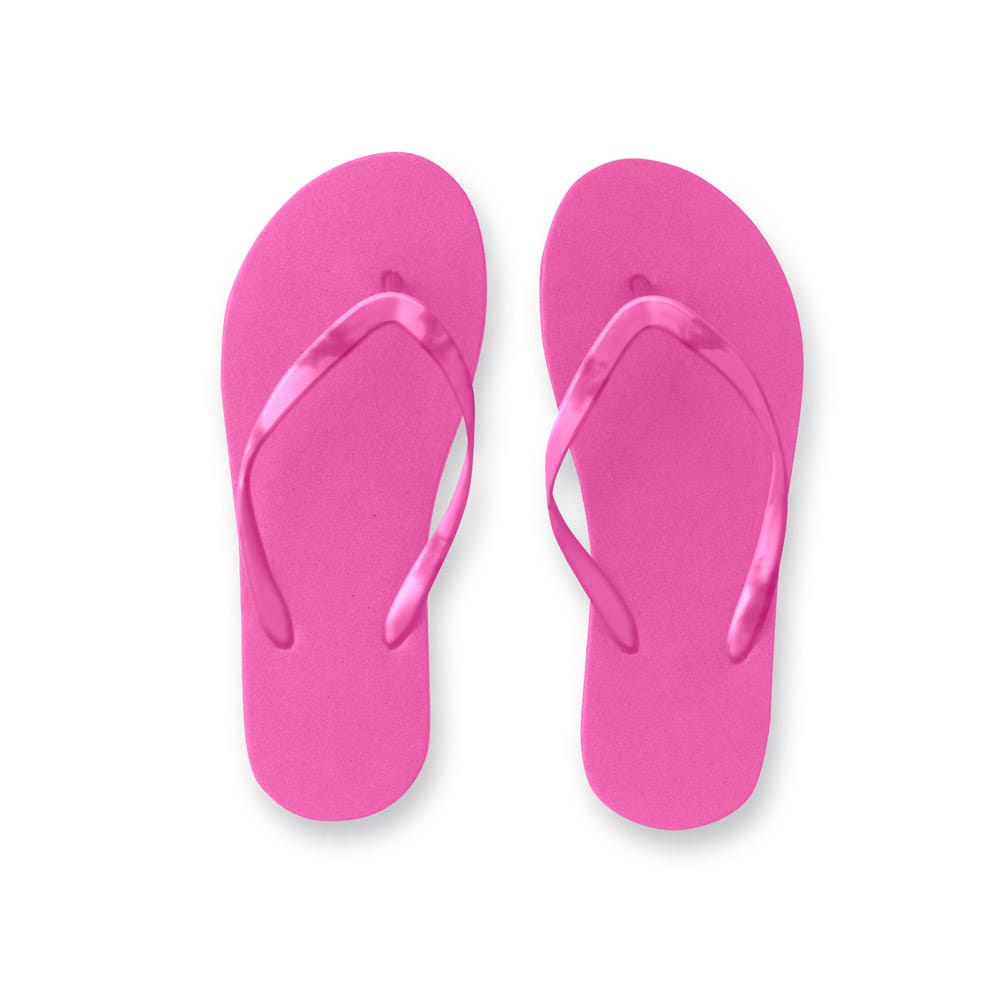 Chinelos confortáveis com sola em PE e tira em PVC. Disponível numa variada gama de cores. Tamanhos disponíveis: P/M (36 ao 39). Fornecidos em polybag. P/M