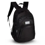 Mochila preta em Poliester 600D/1680D com alças para as costas, alça para as mãos, compartimento para notebook de até 15", 3 bolsos externos com zíper e 2 bolsos externos em tela. ESPECIFICAÇÕES TÉCNICAS