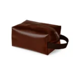 Necessaire com alça em material sintético na cor marrom.