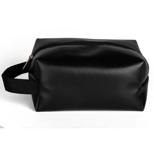 Necessaire com alça em material sintético na cor preta. ESPECIFICAÇÕES TÉCNICAS