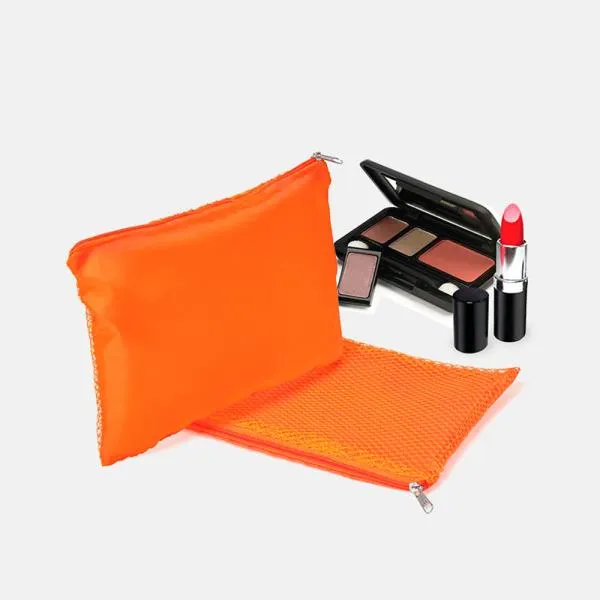 Necessaire em Nylon/Polyester laranja. Conta com fechamento em zíper.