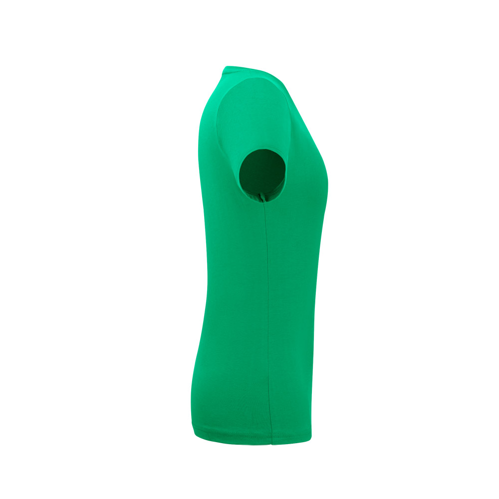 Camiseta feminina de corte cinturado em malha 100% algodão (165 g/m2) com fio 30/1 misto. Com gola em ribana 1x1 com fita de reforço e com costura dupla nas mangas, barra de fundo e laterais. Produto contém certificação ABVTEX . Tamanhos: P, M, G, GG