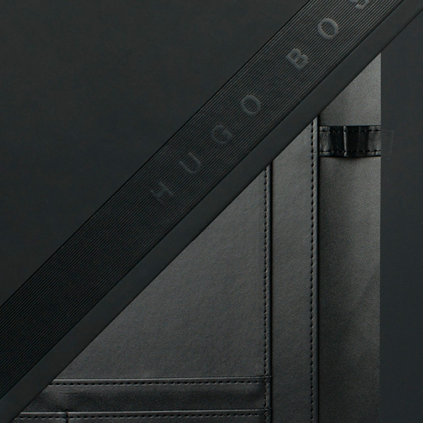Pasta A5. Black. Coleção Edge. Com capacidade para vários cartões e caderno de 40 folhas. Embalagem "Hugo Boss" inclusa. 175 x 220 x 18 mm