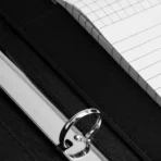 Pasta convenção em material sintético e microfibra. Conta com 20 folhas pautadas A4, fechamento em zíper, porta cartões, porta folhas e 4 argolas de 20mm para folhas.