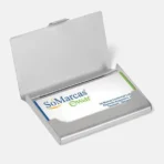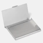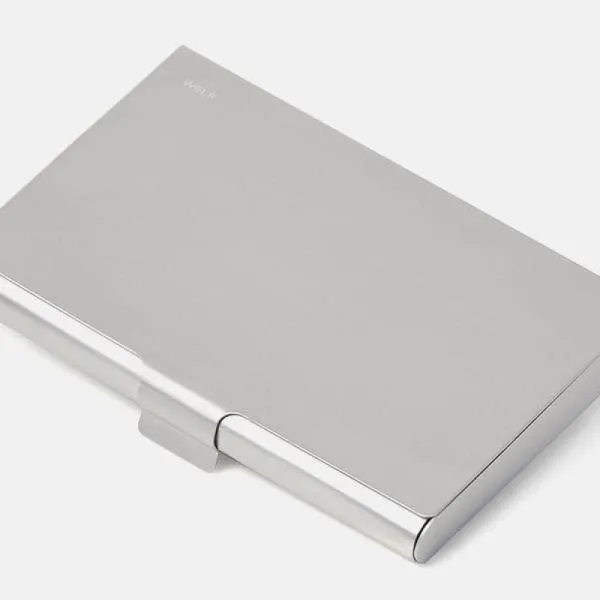 Confeccionado em alumínio cromado fosco, possui tampa com fecho prático e design para bolso. Ideal para proteger cartões de visitas. Capacidade para aproximadamente 20 cartões.