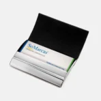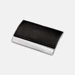 PORTA-CARTÃO EM METAL CROMADO E MATERIAL SINTÉTICO PRETO